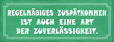 Schild regelmäßiges zuspätkommen ist auch eine art der zuverlässigkeit 27x10