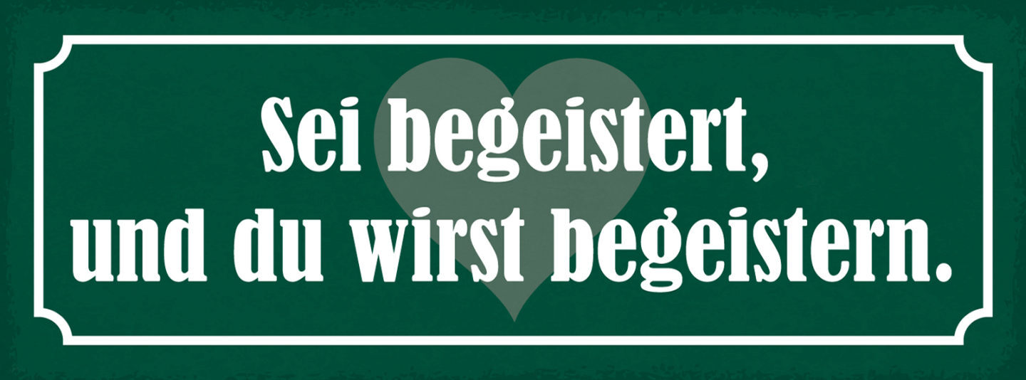 Schild Sei Begeistert & Du Wirst Begeistern Ausstrahlung 27x10 Blech od.Holz