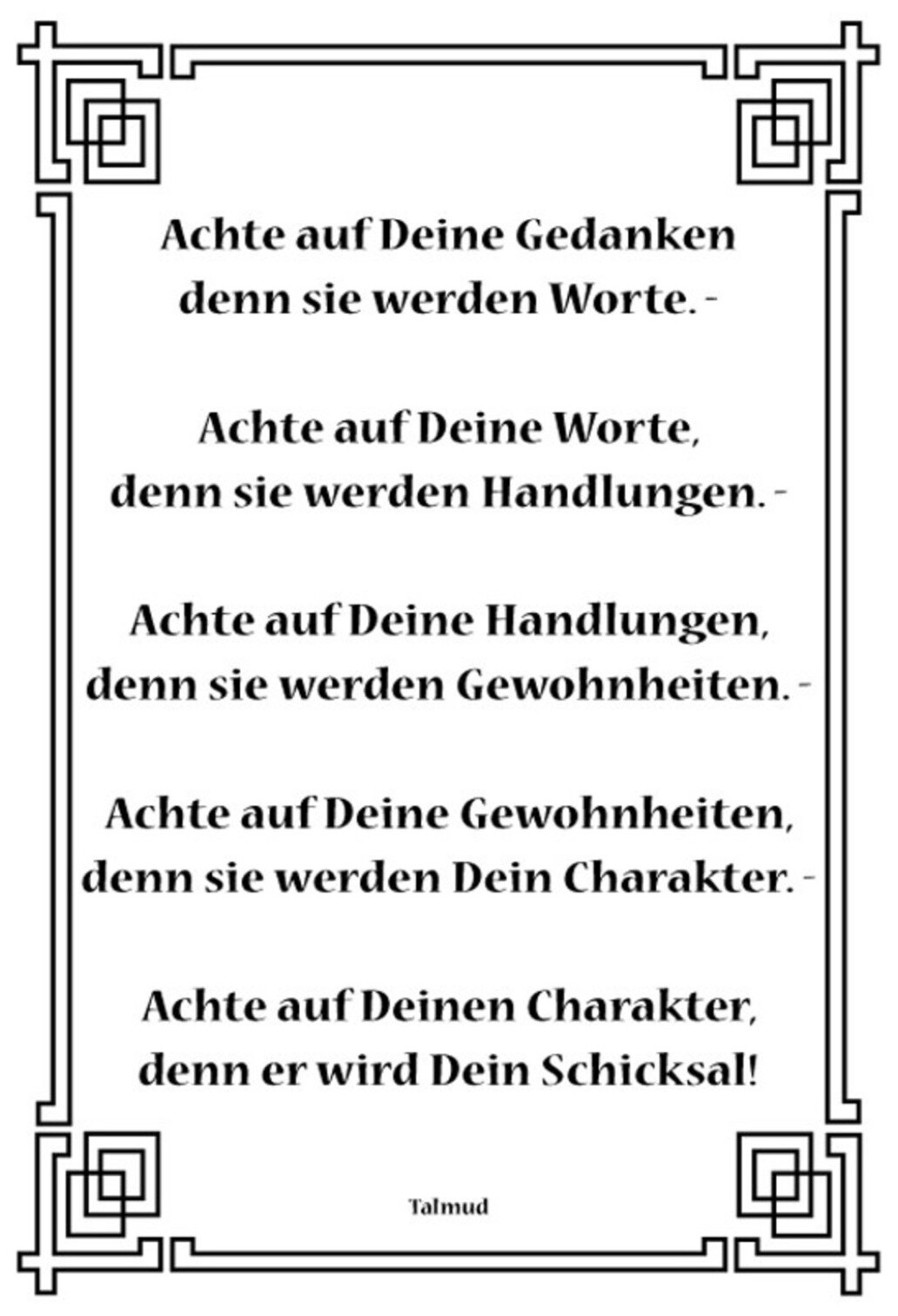 Schild Spruch Achte auf deine Gedanken denn sie werden Worte Talmud JW