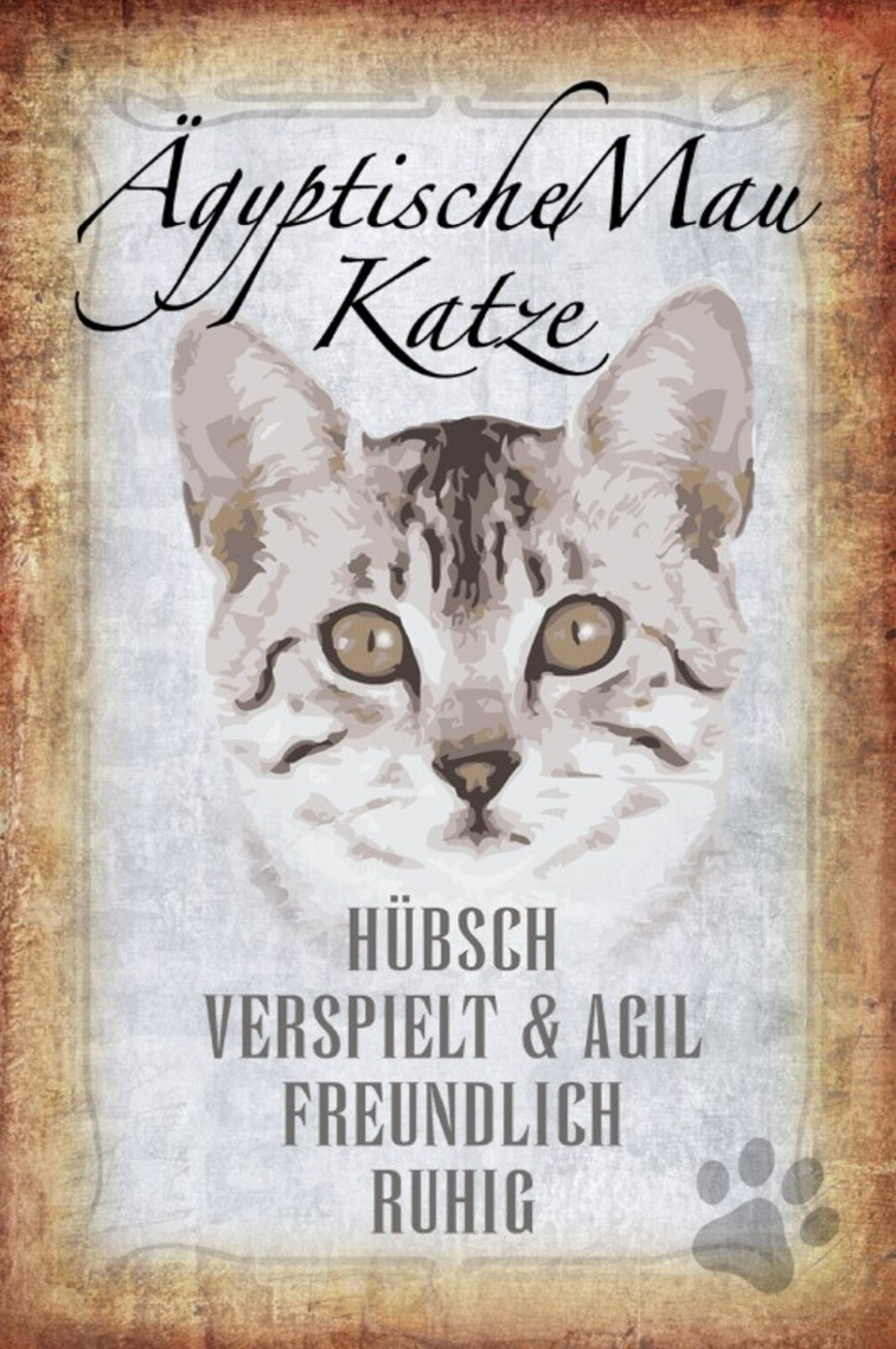 Schild Spruch Ägyptische Mau Katze Steckbrief Hübsch Verspielt JW