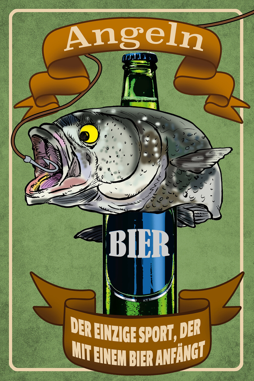 Schild Spruch Angeln Der einzige der mit Bier anfängt Comic Alkohol JW