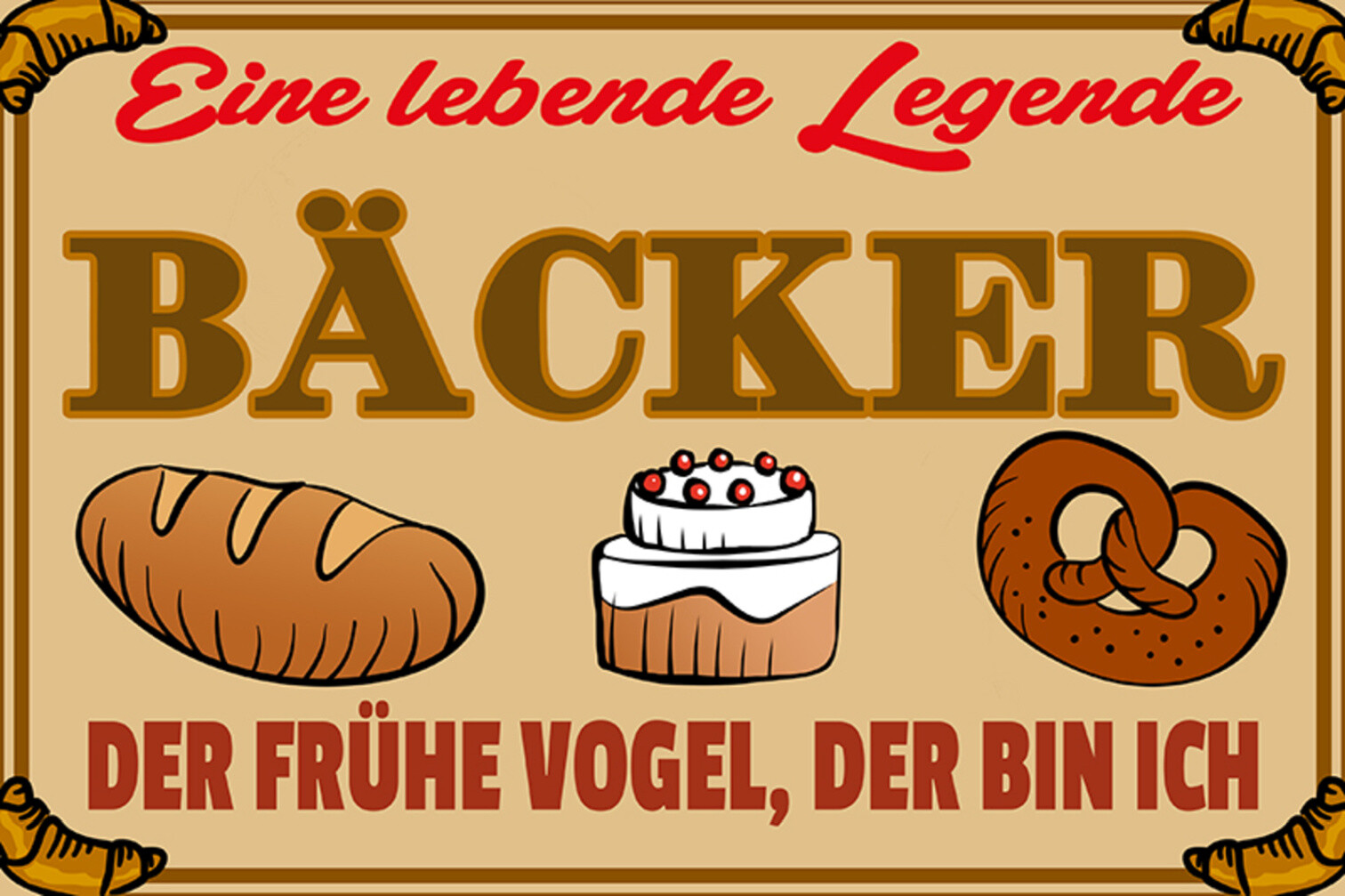 Schild Spruch Bäcker Eine lebende Legende Der frühe Vogel der bin ich JW