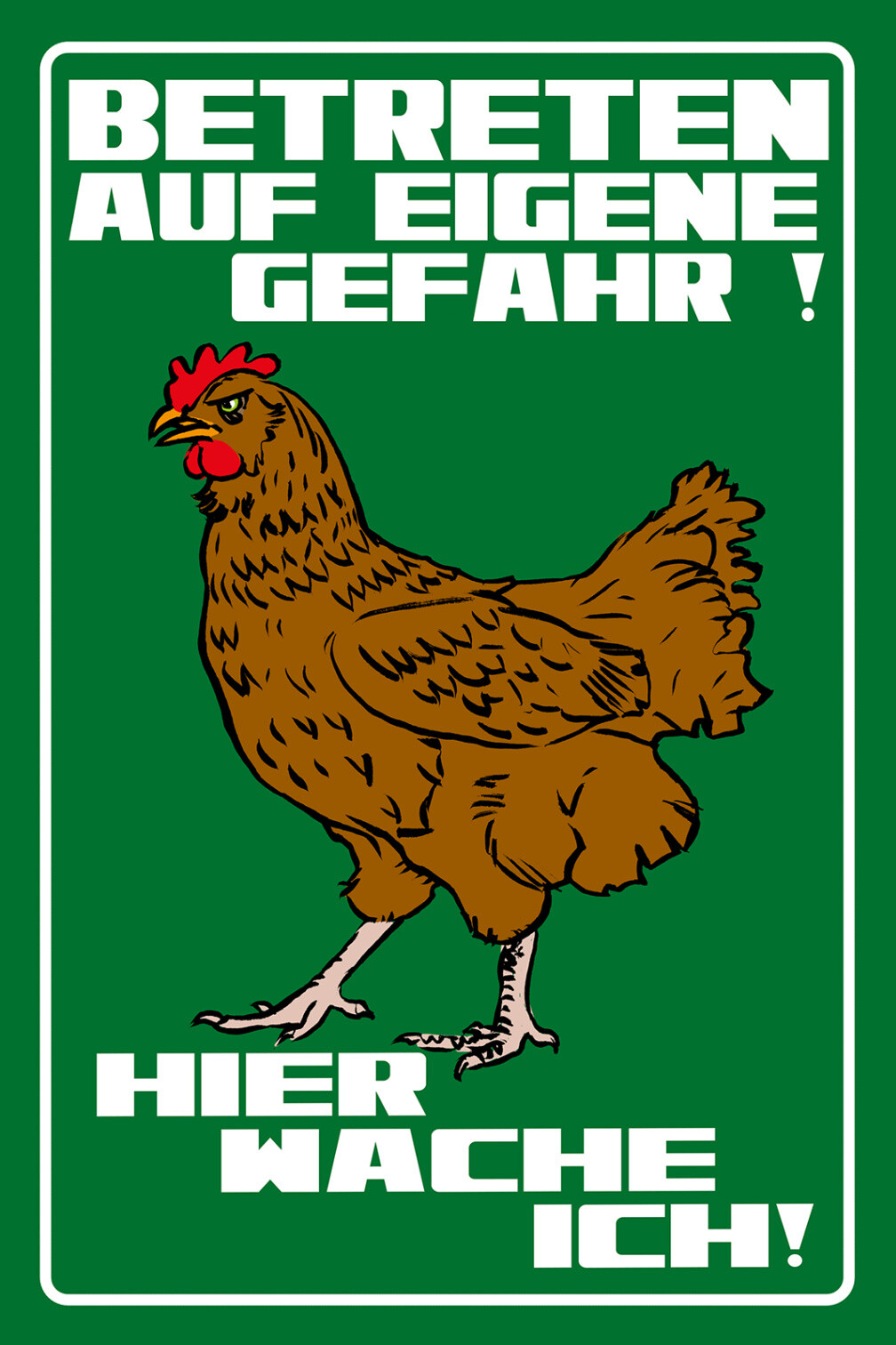 Schild Spruch Betreten auf eigene Gefahr Hier wache ich Huhn Hahn Warnung JW