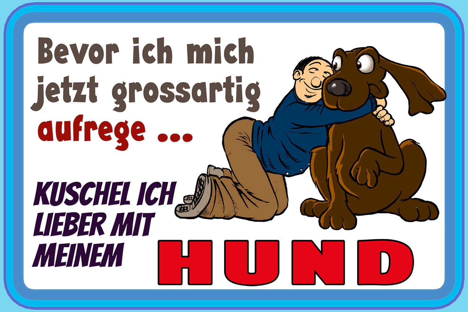Schild Spruch Bevor ich mich aufrege Kuschel ich mit Hund Comic JW