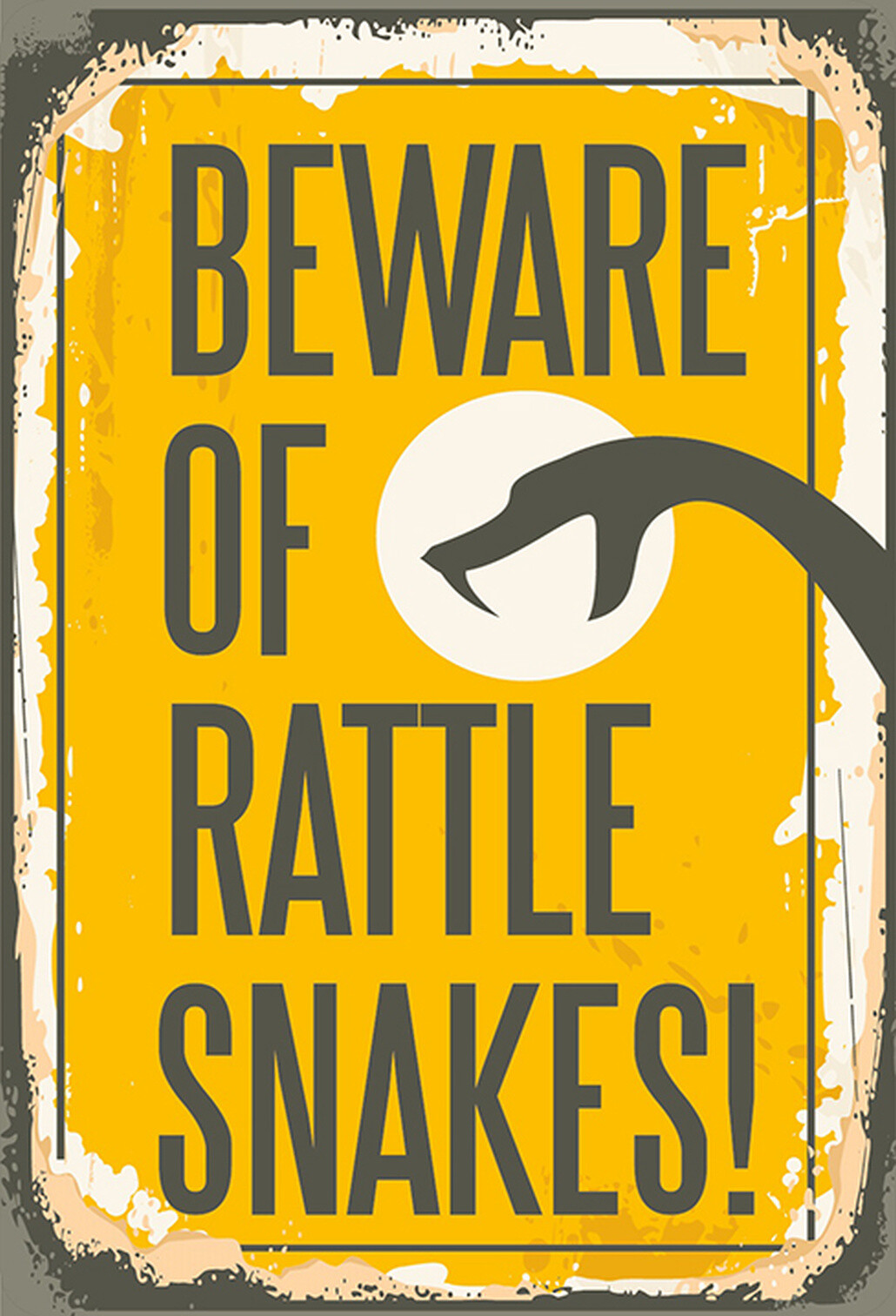 Schild Spruch Beware of Rattle Snakes Vorischt vor Klapperschlangen Comic JW