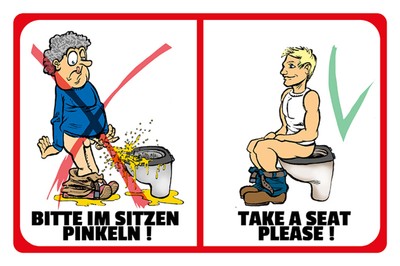 Schild Spruch Bitte im Sitzen pinkeln Take a seat please Toilette JW