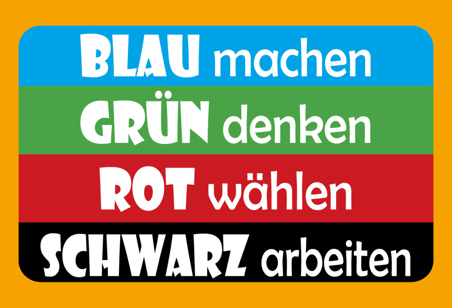 Schild Spruch Blau machen Grün denken Rot wählen Schwarz arbeiten Politik JW