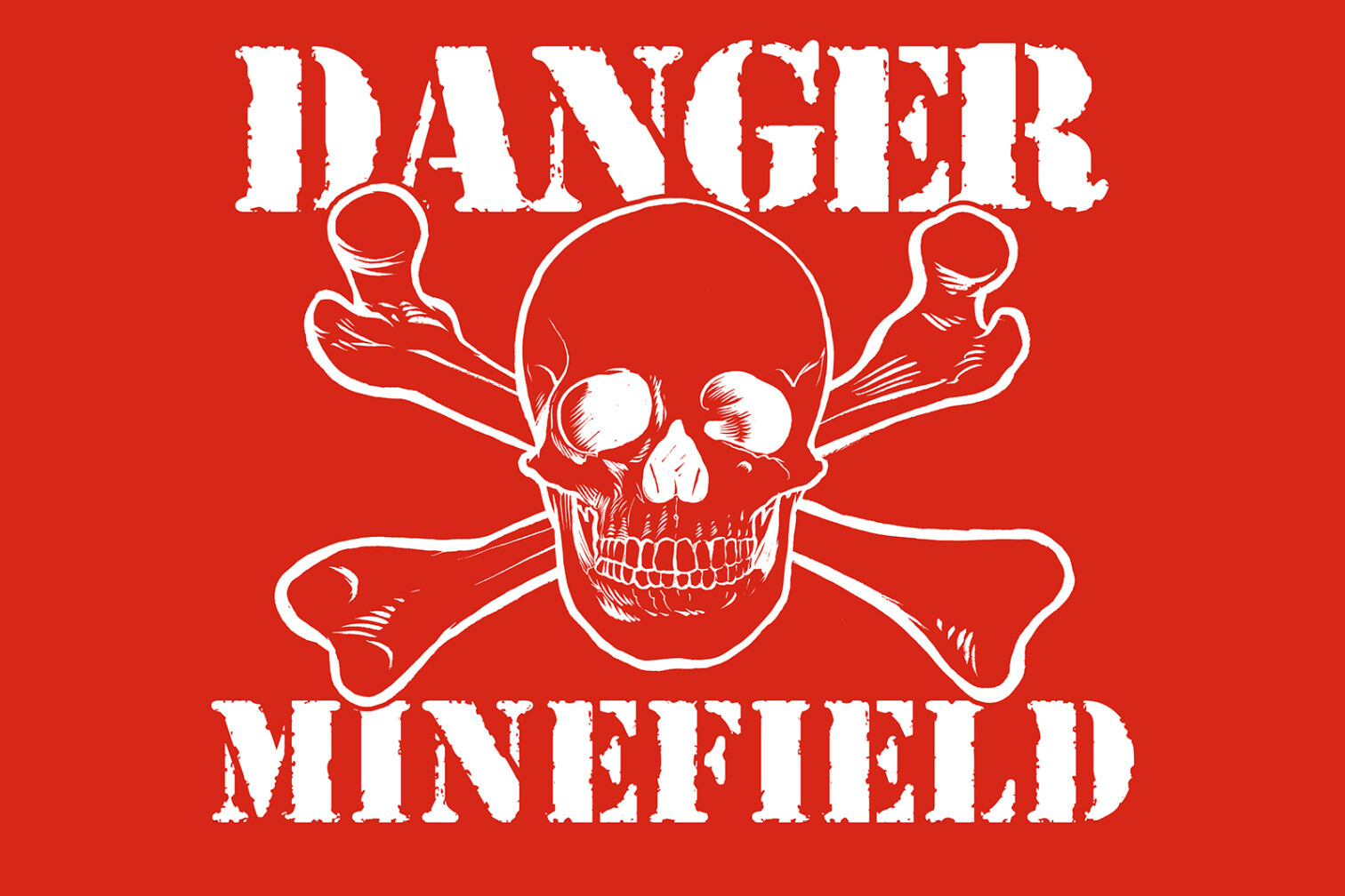 Schild Spruch Danger Minefield Gefahr Minenfeld Totenkopf Comic JW