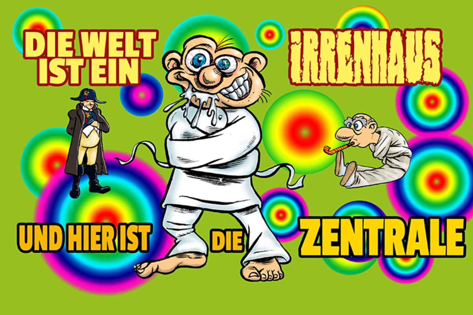 Schild Spruch Die Welt ist ein Irrenhaus und hier ist die Zentrale JW