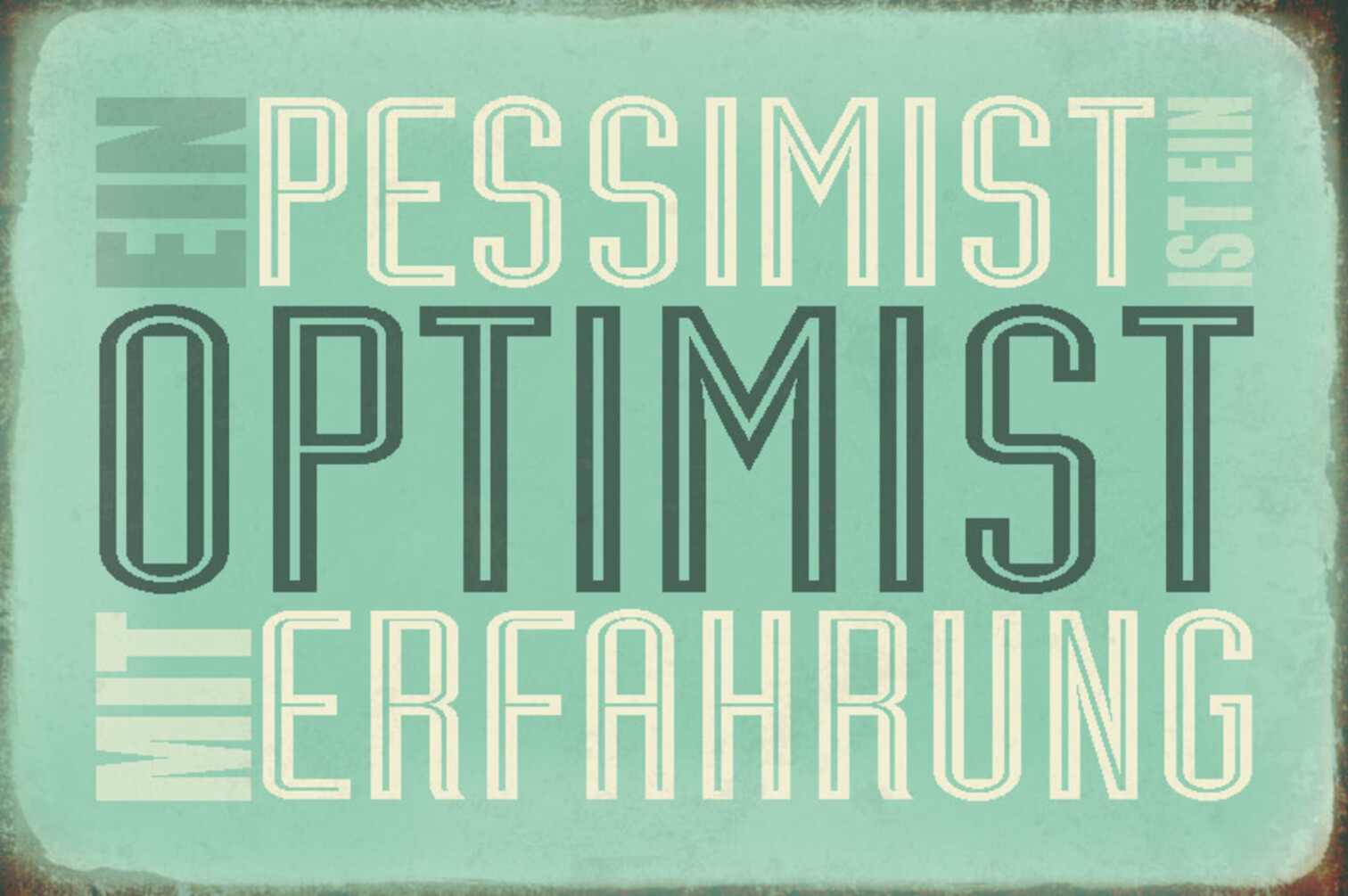 Schild Spruch Ein Pessimist ist ein Optimist mit Erfahrung JW