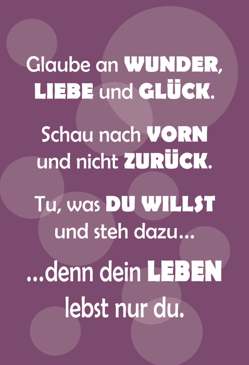 Schild Spruch Glaube an Wunder Liebe Glück Dein Leben lebst nur du JW