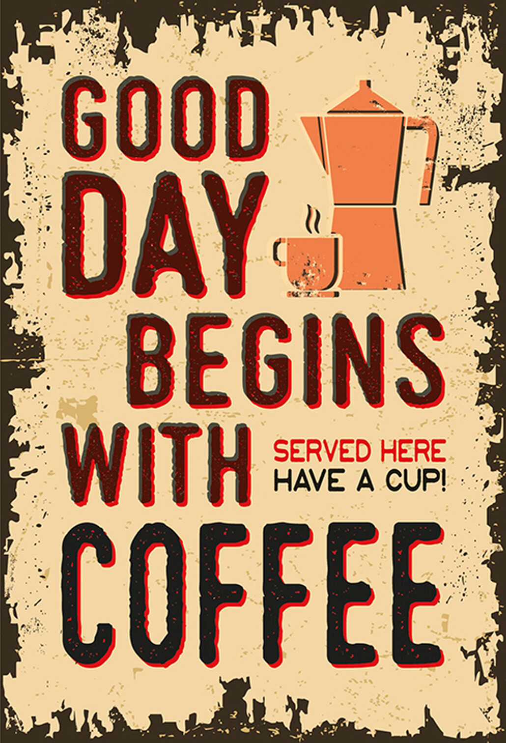 Schild Spruch Good day begins with coffee Guter Tag beginnt mit Kaffee JW