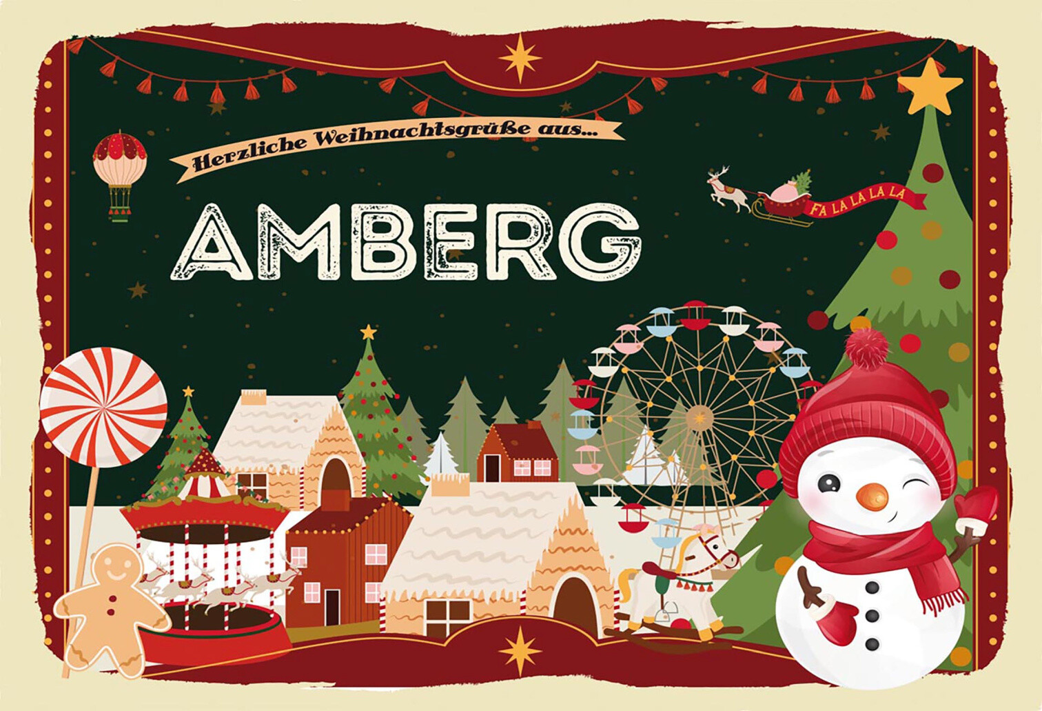 Schild Spruch Herzliche Weihnachtsgrüße aus Amberg Comic Schneemann JW
