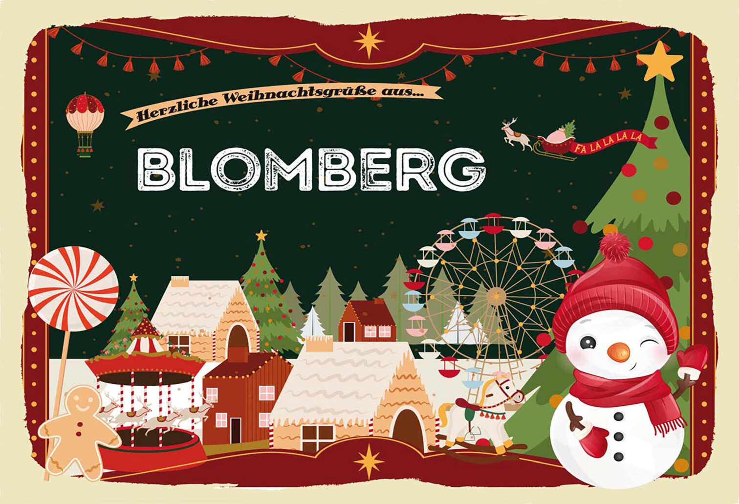 Schild Spruch Herzliche Weihnachtsgrüße aus Blomberg Comic Schneemann JW
