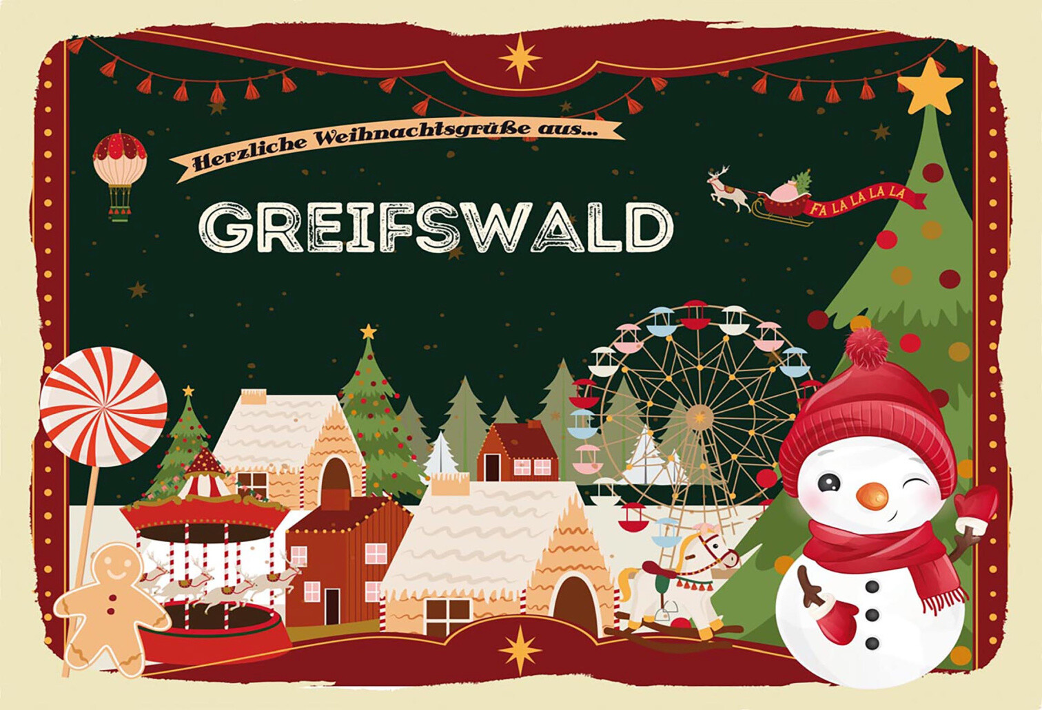 Schild Spruch Herzliche Weihnachtsgrüße aus Greifswald Comic Schneemann JW