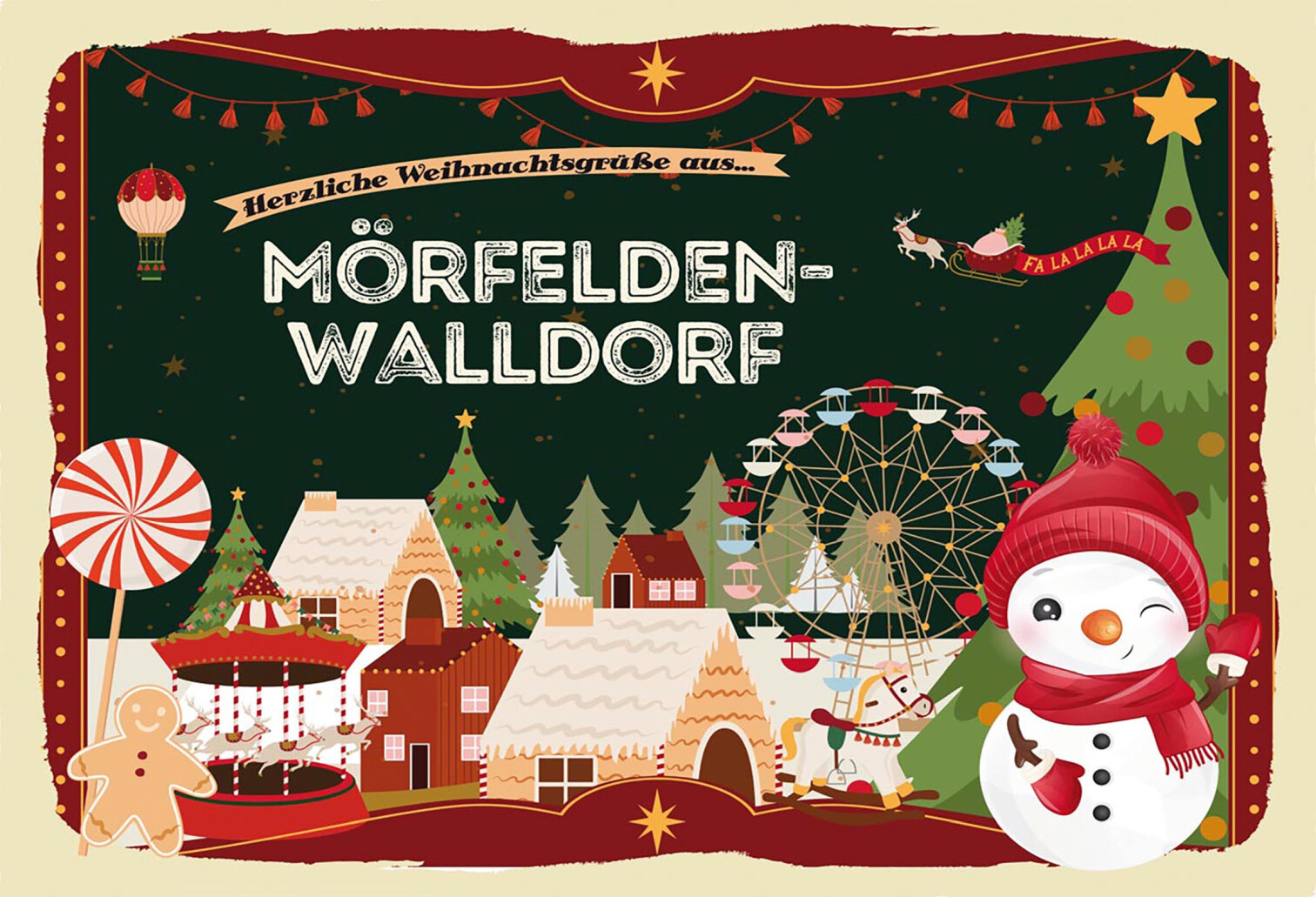 Schild Spruch Herzliche Weihnachtsgrüße aus Mörfelden-Walldorf Comic JW