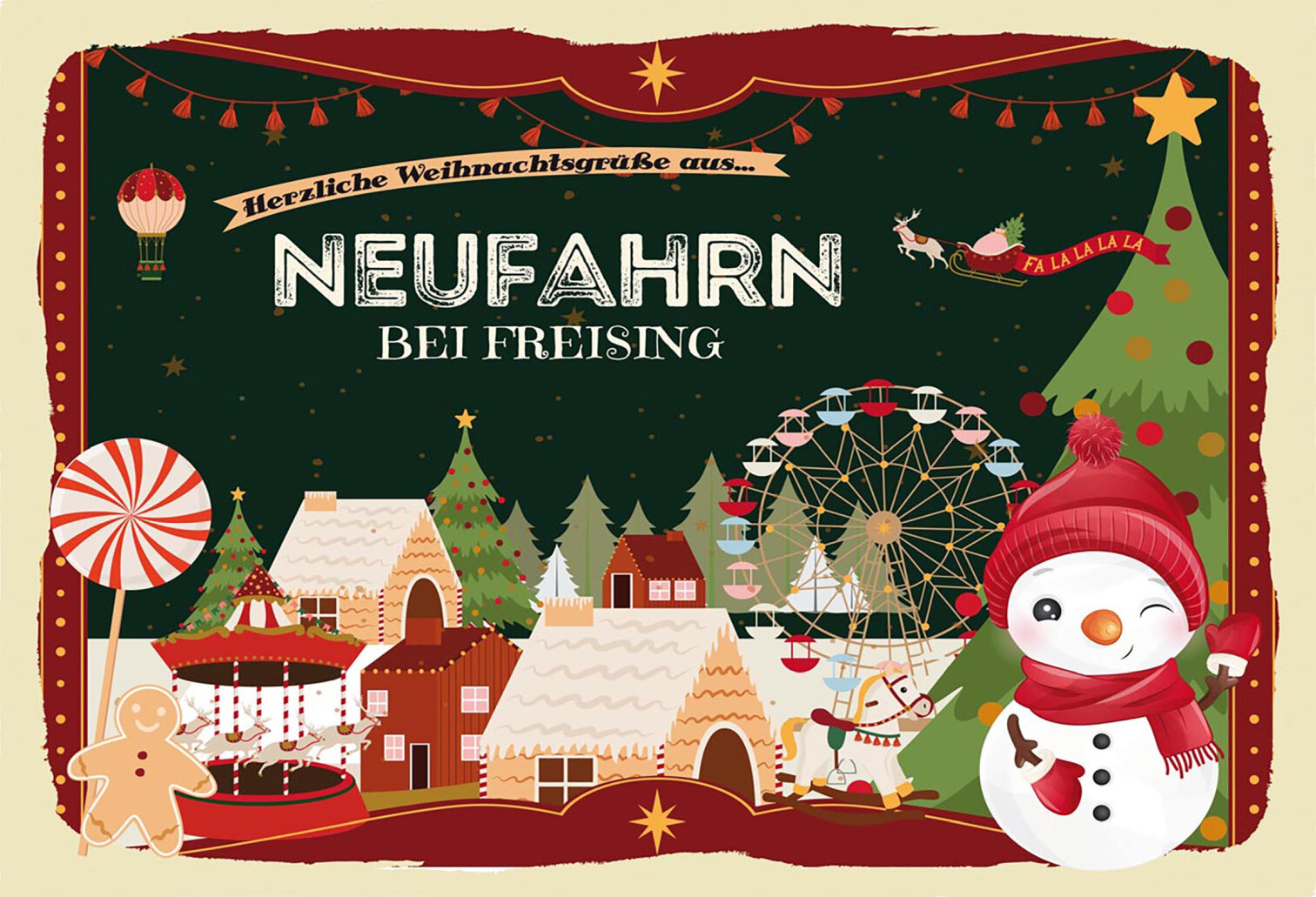 Schild Spruch Herzliche Weihnachtsgrüße aus Neufahrn bei Freising Comic JW