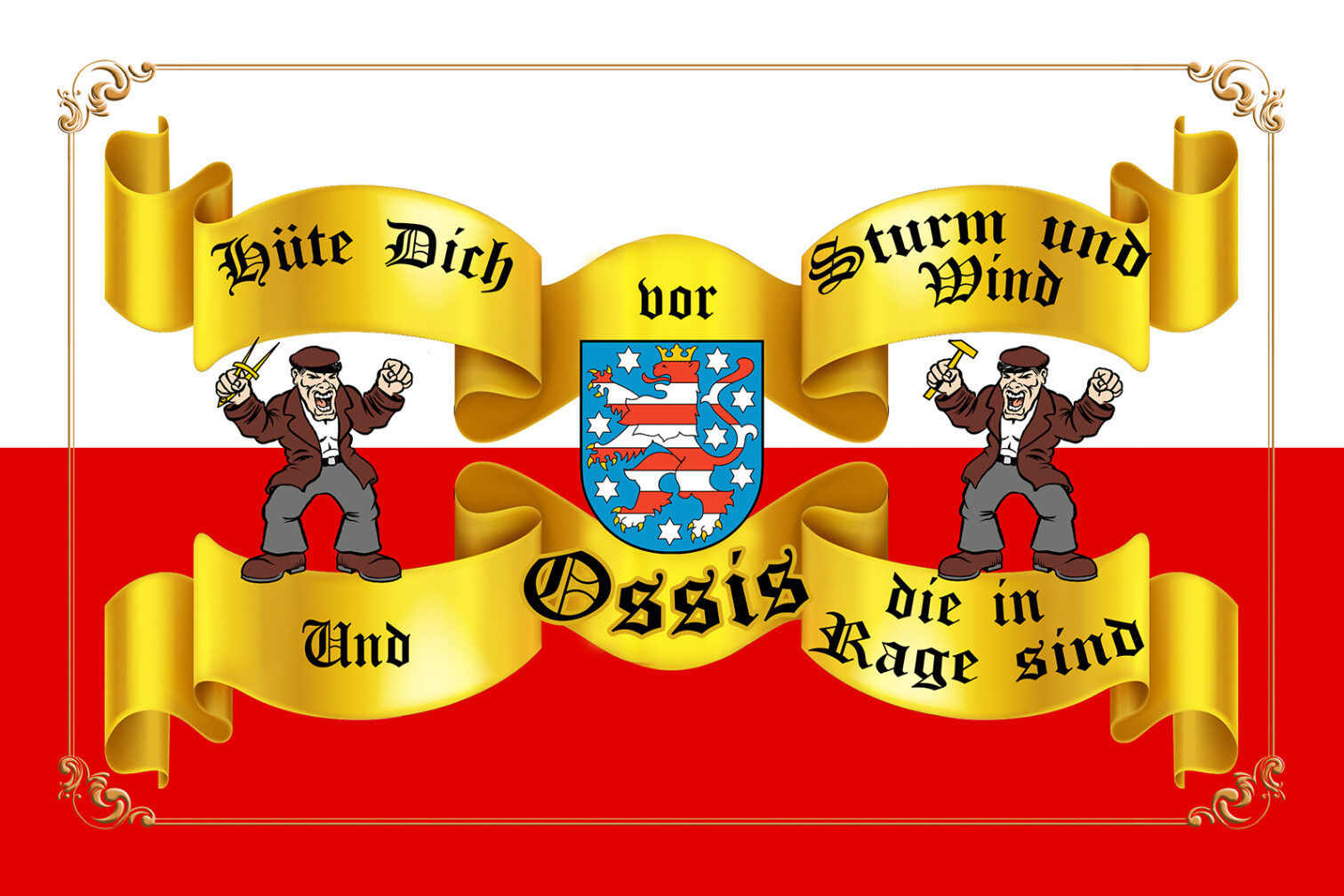 Schild Spruch Hüte dich vor Strum und Wind und Ossis die in Rage sind DDR JW