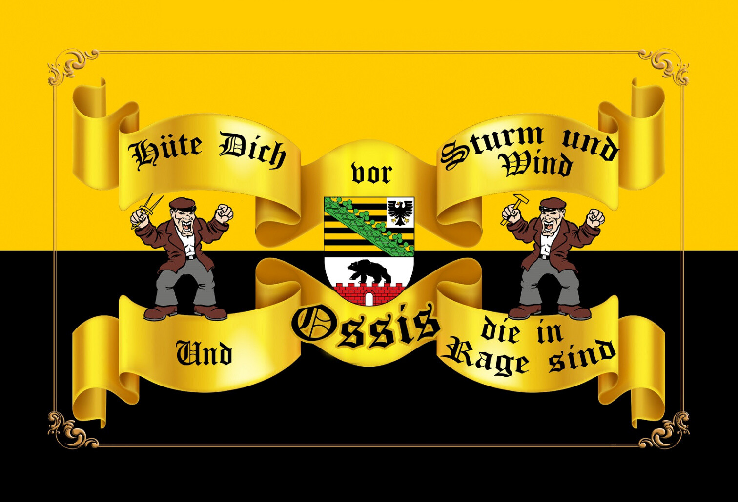 Schild Spruch Hüte dich vor Strum und Wind und Ossis die in Rage sind DDR JW