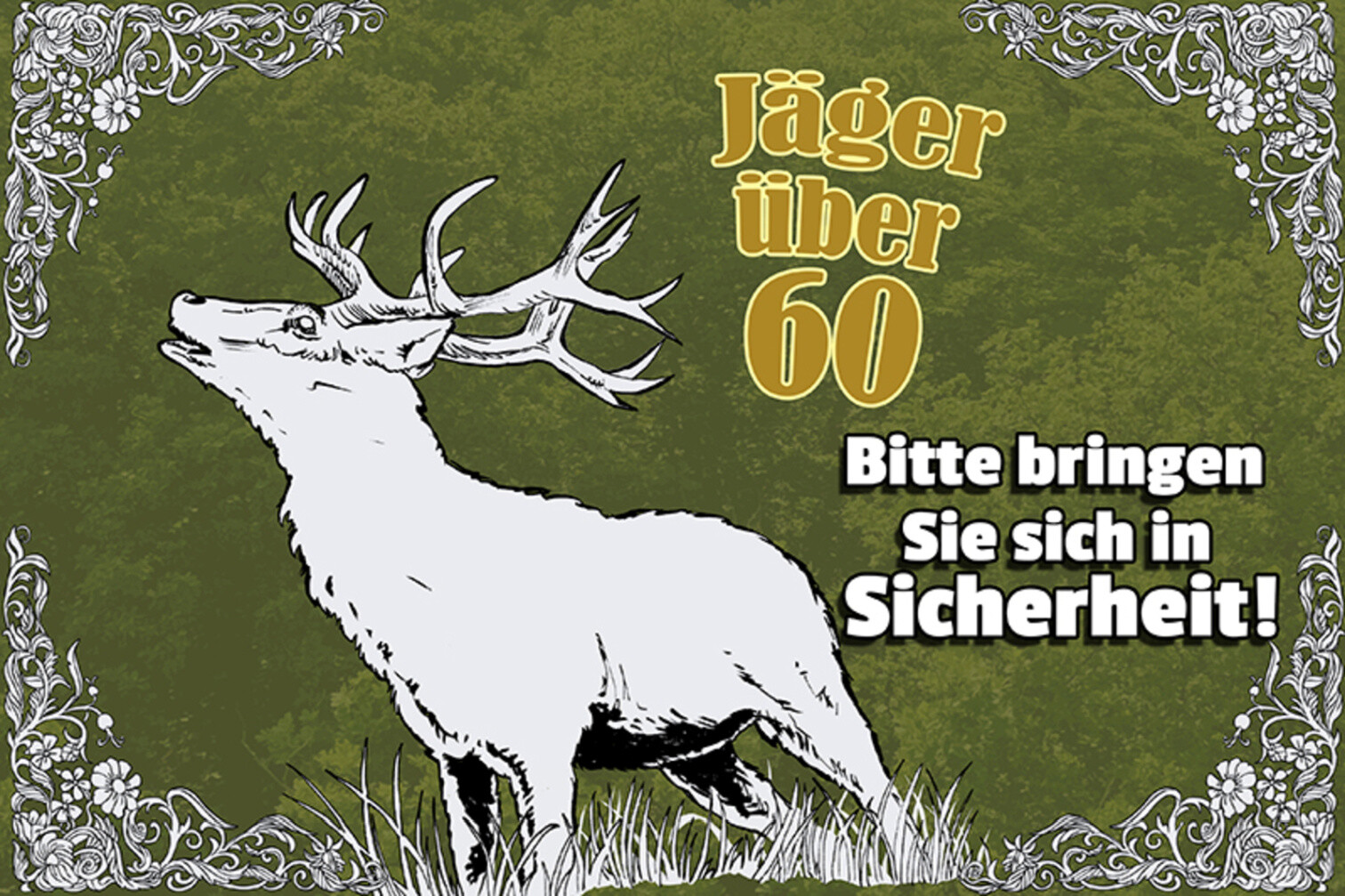 Schild Spruch Jäger über 60 Bringen sie sich in Sicherheit Hirsch JW