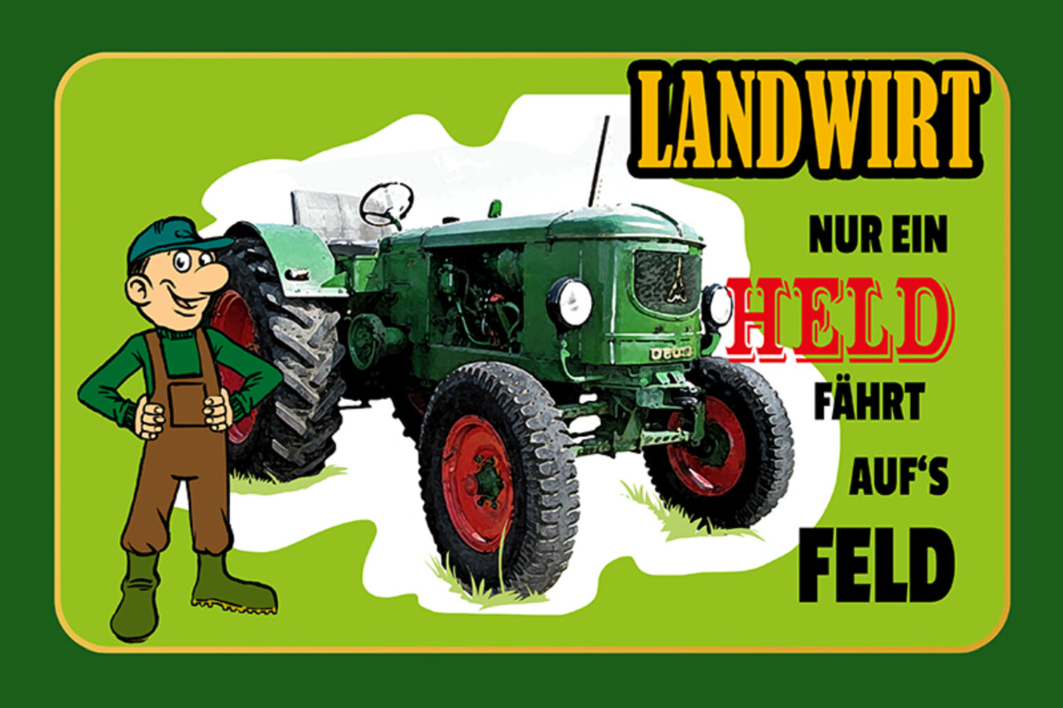 Schild Spruch Landwirt Nur ein Held fährt aufs Feld Bauer JW