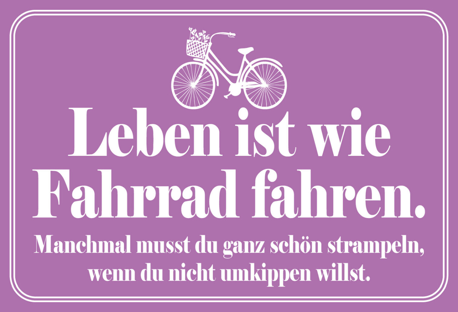 Schild Spruch Leben ist wie Fahrrad fahren Manchmal musst strampeln Sport JW