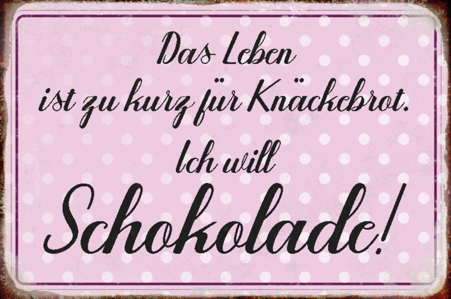 Schild Spruch Leben ist zu kurz für Knäckebrot Ich will Schokolade Essen JW