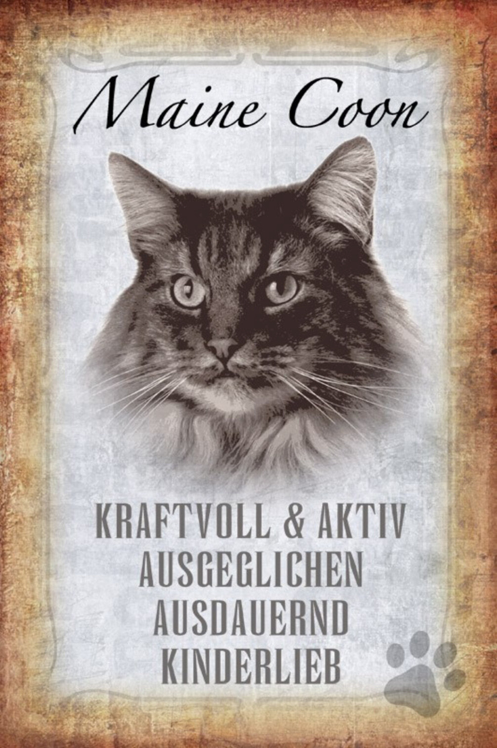 Schild Spruch Maine Coon Katze Steckbrief Kraftvoll Kinderlieb JW