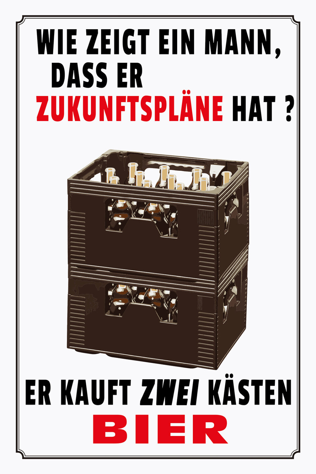 Schild Spruch Mann mit Zukunftsplänen kauft 2 Kästen Bier Alkohol JW