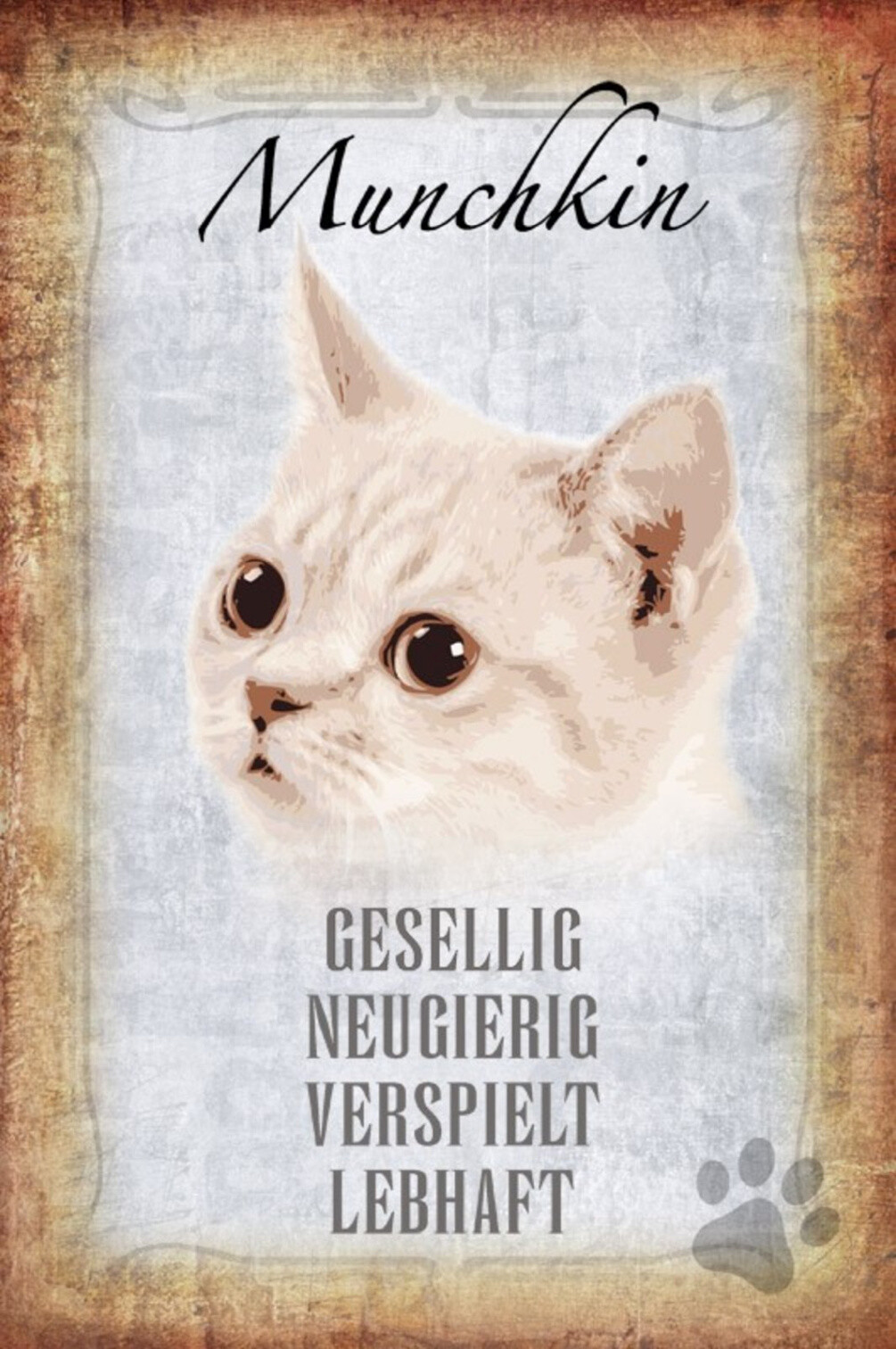 Schild Spruch Munchkin Katze Steckbrief Gesellig Neugierig JW