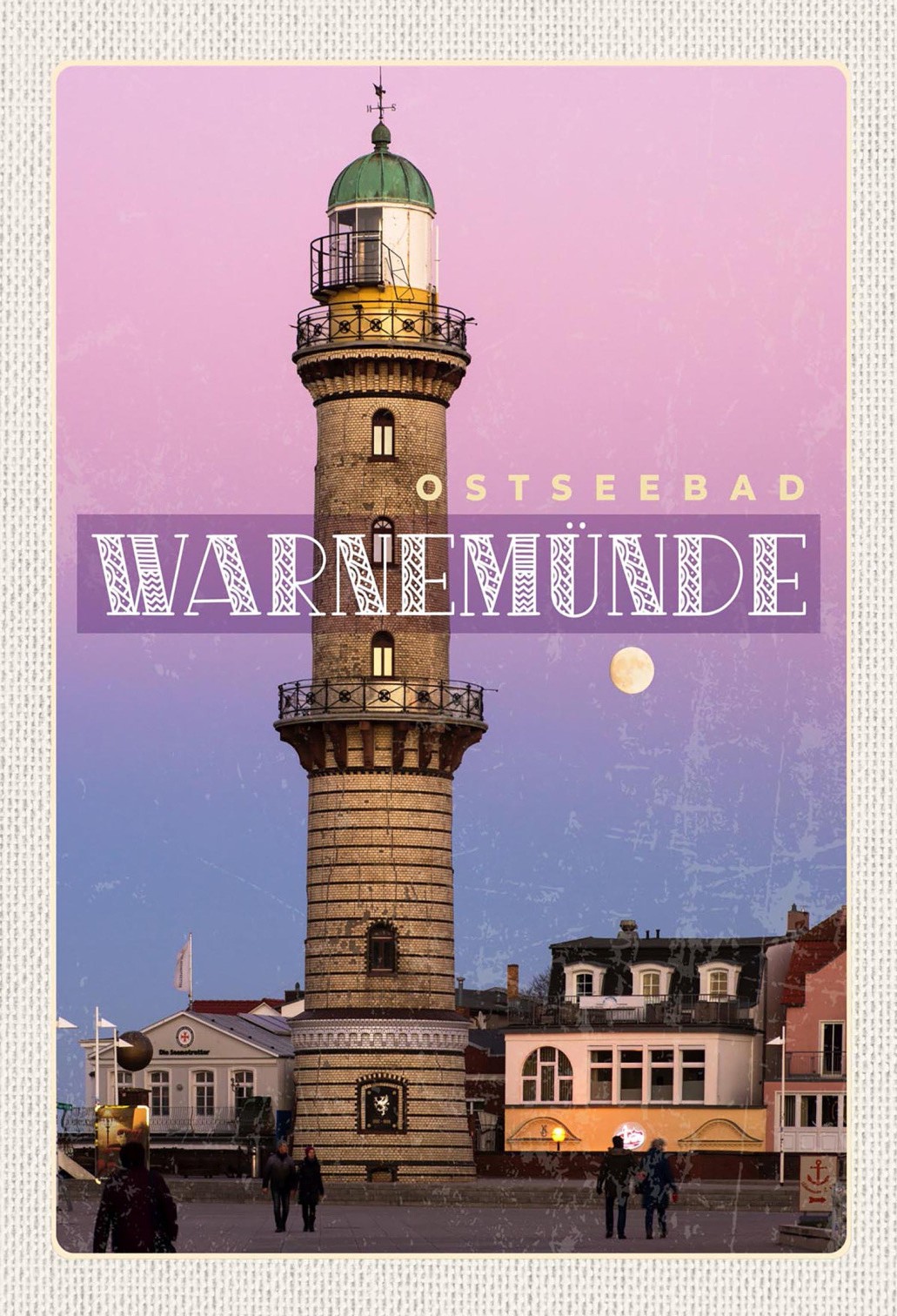Schild Spruch Ostseebad Warnemünde Leuchtturm Mond JW