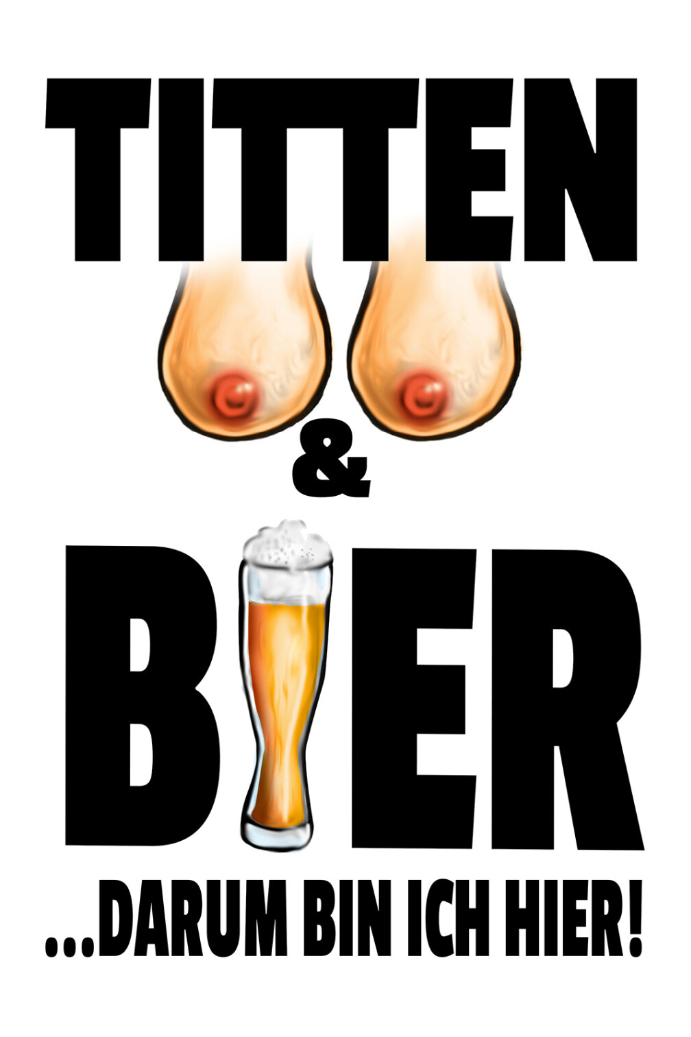 Schild Spruch Titten und Bier Darum bin ich hier Party Alkohol JW