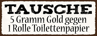 Schild tausche 5 gramm gold gegen 1 rolle toilettenpapier wc 27x10 blech od.holz