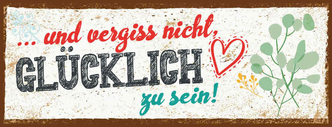 Schild Und Vergiss Nicht Glücklich Zu Sein Glück Leben 27x10 Blech od.Holz