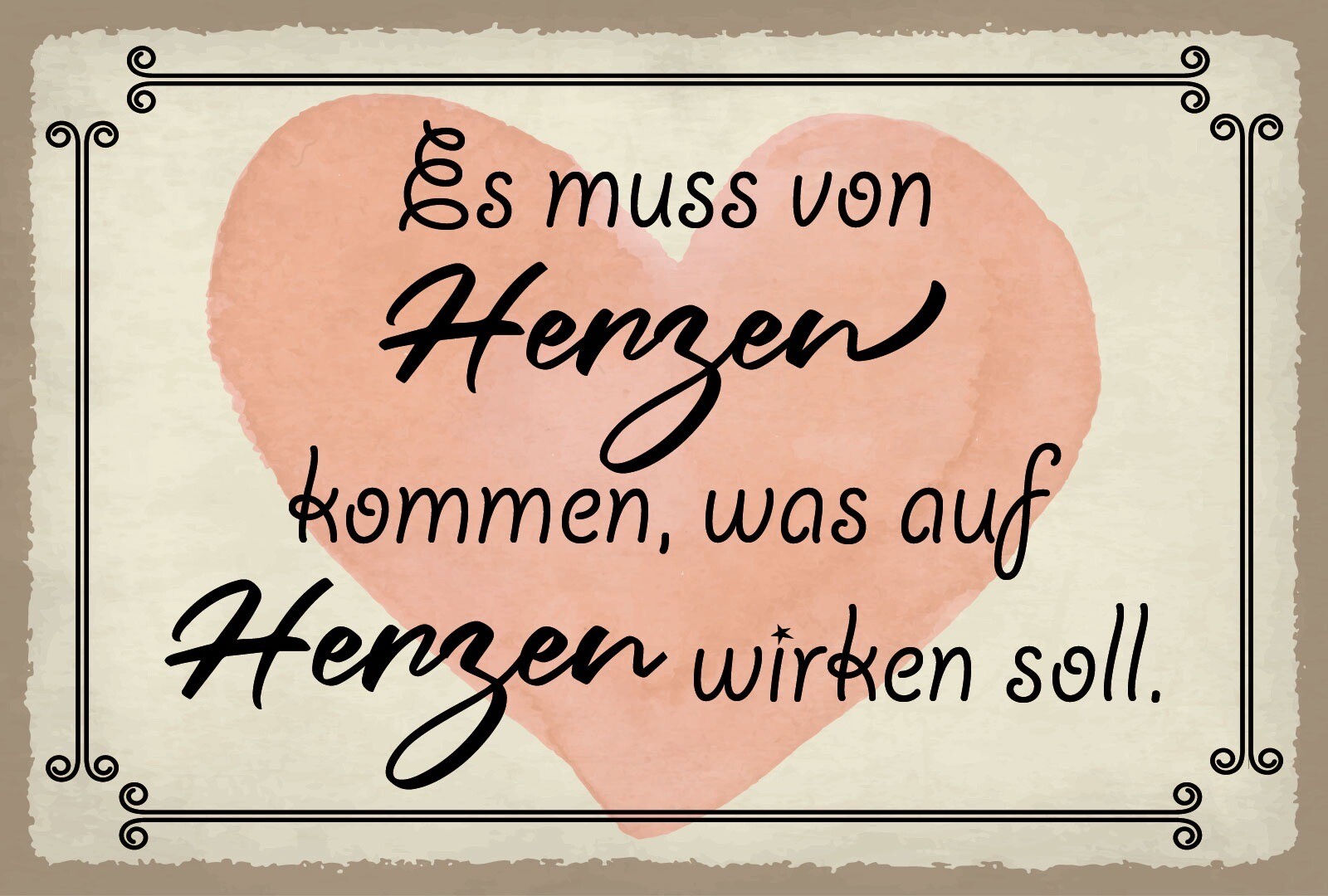 Schild Von Herzen kommen Liebe Freunde 12x18 / 20x30 / 30x40 Blech od. Holz