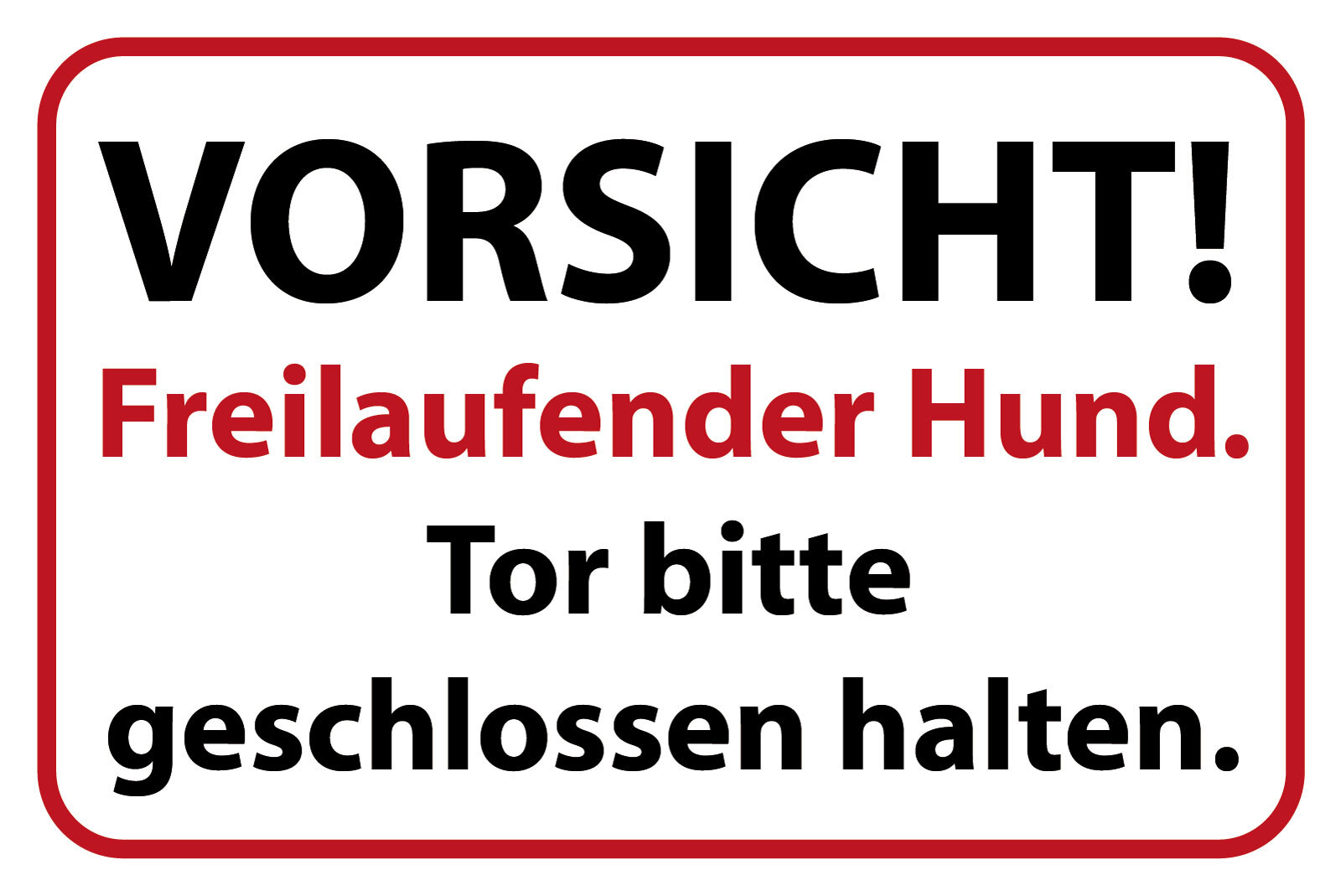 Schild Vorsicht Freilaufender Hund Tor 12x18 / 20x30 / 30x40 Blech od. Holz