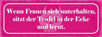 Schild wenn frauen sich unterhalten sitzt der teufel in der ecke & lernt 27x10