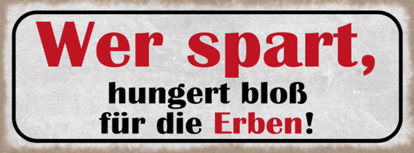 Schild Wer Spart Hungert Bloß Für Die Erben Geld Sparen 27x10 Blech od.Holz
