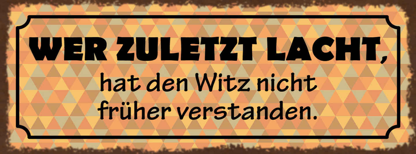 Schild Wer Zuletzt Lacht Hat Den Witz Nicht Früher Verstanden Lachen 27x10