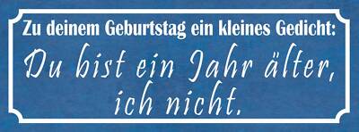 Schild zu deinem geburtstag ein gedicht du bist 1 jahr älter ich nicht 27x10