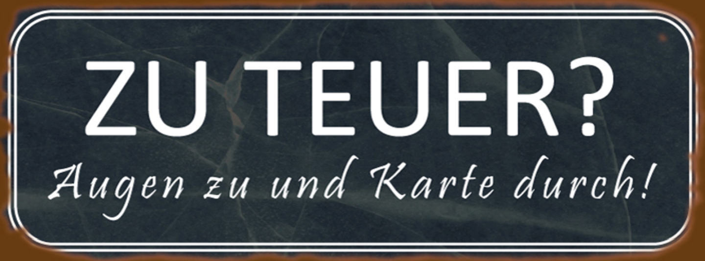 Schild Zu Teuer Augen Zu & Karte Durch Geld Pleite 27 x 10 Blech od. Holz