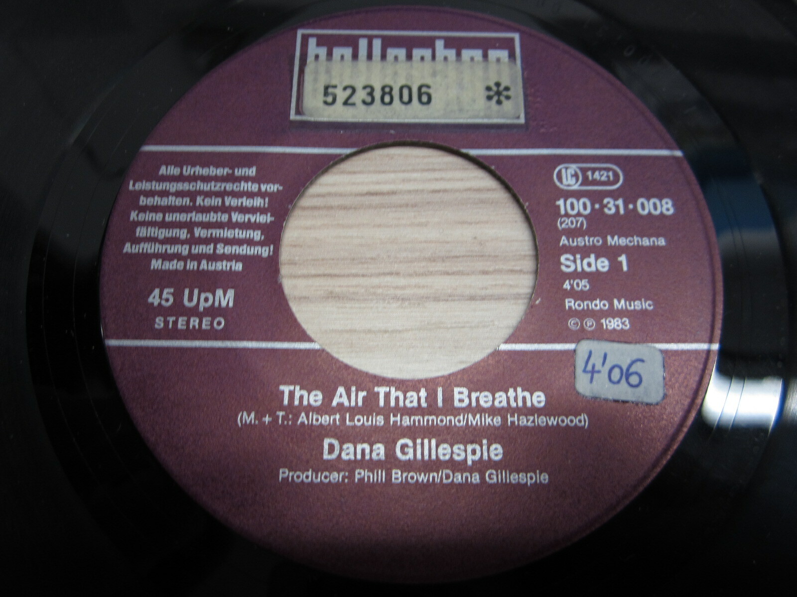 Single / Dana Gillespie ?– The Air That I Breathe / AUT PRESS / RAR /