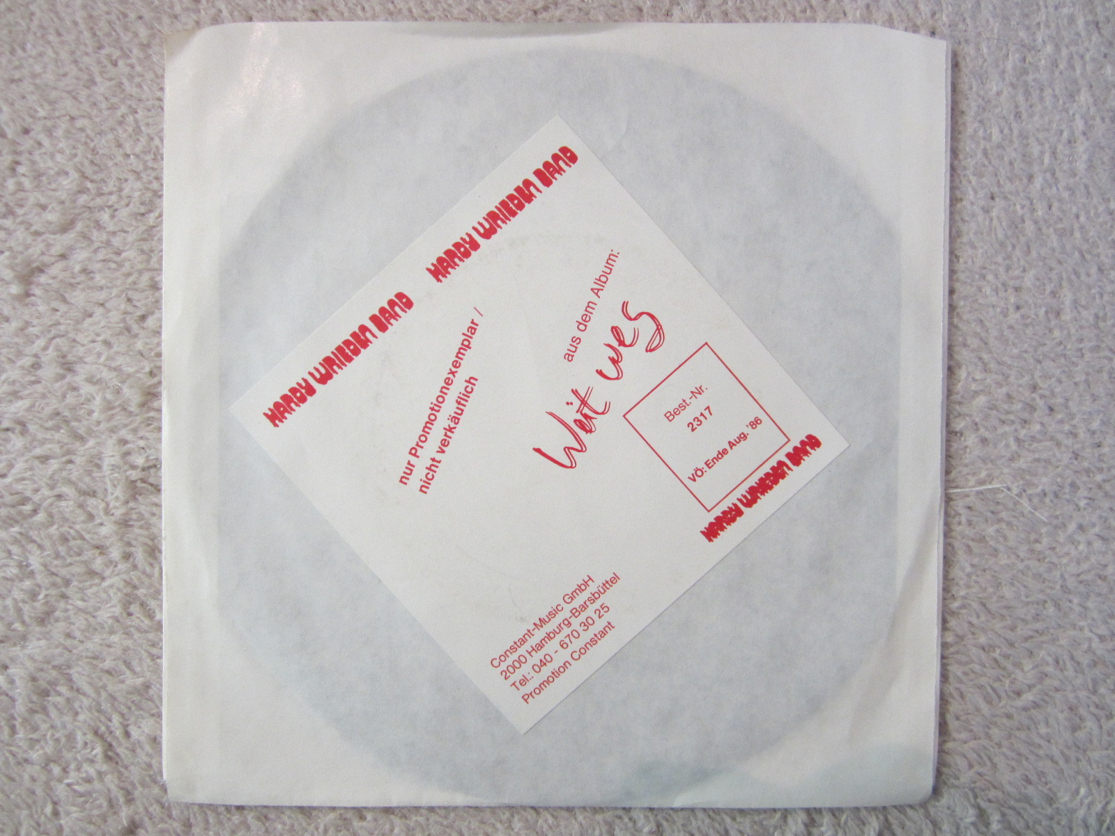Single / HARDY WRIEDEN BAND / PROMO / BLUES ROCK / TOP RARITÄT / 1986 /