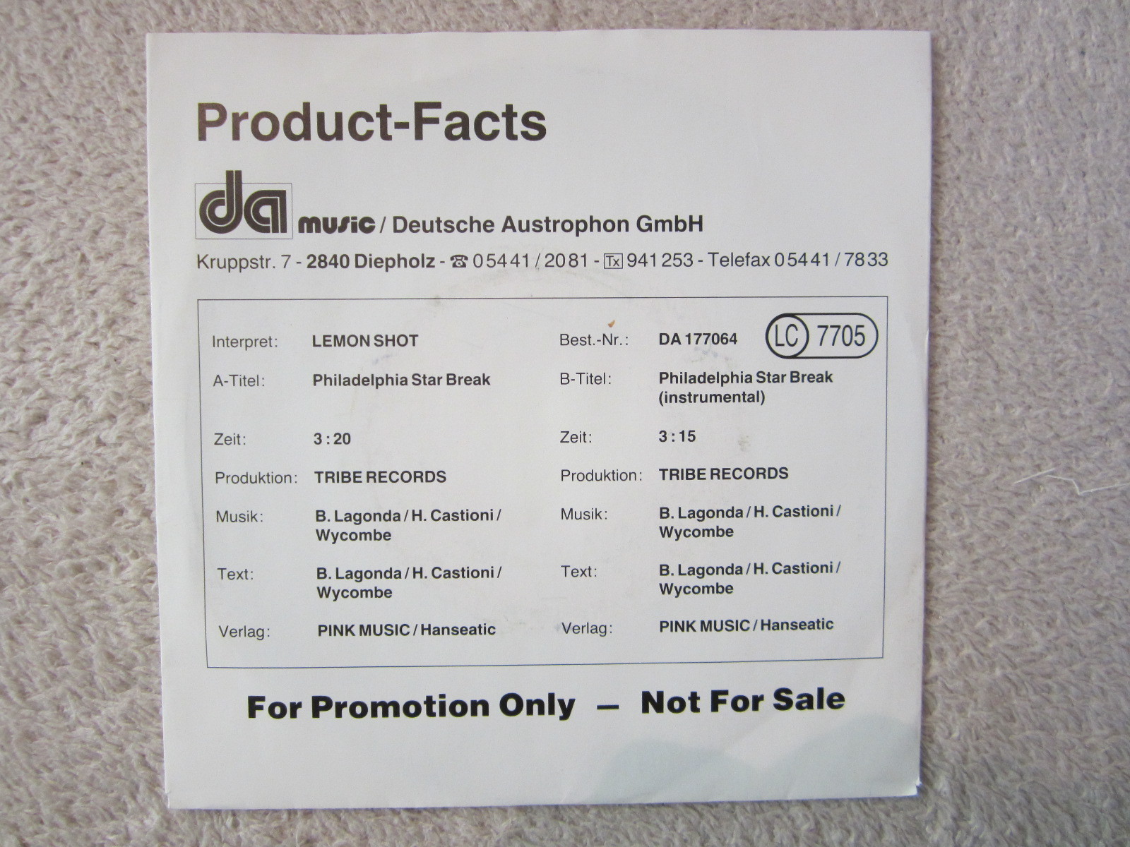 Very GooDie Platte ist gespielt und weist leichte Fremdgeräusche auf. Haarkratzer sind vorhanden, jedoch kaum hörbar. Das Cover weist leichte Abnutzungserscheinungen auf. Der Wert einer VG/VG-Platte beträgt 75 % einer M/M-Platte.