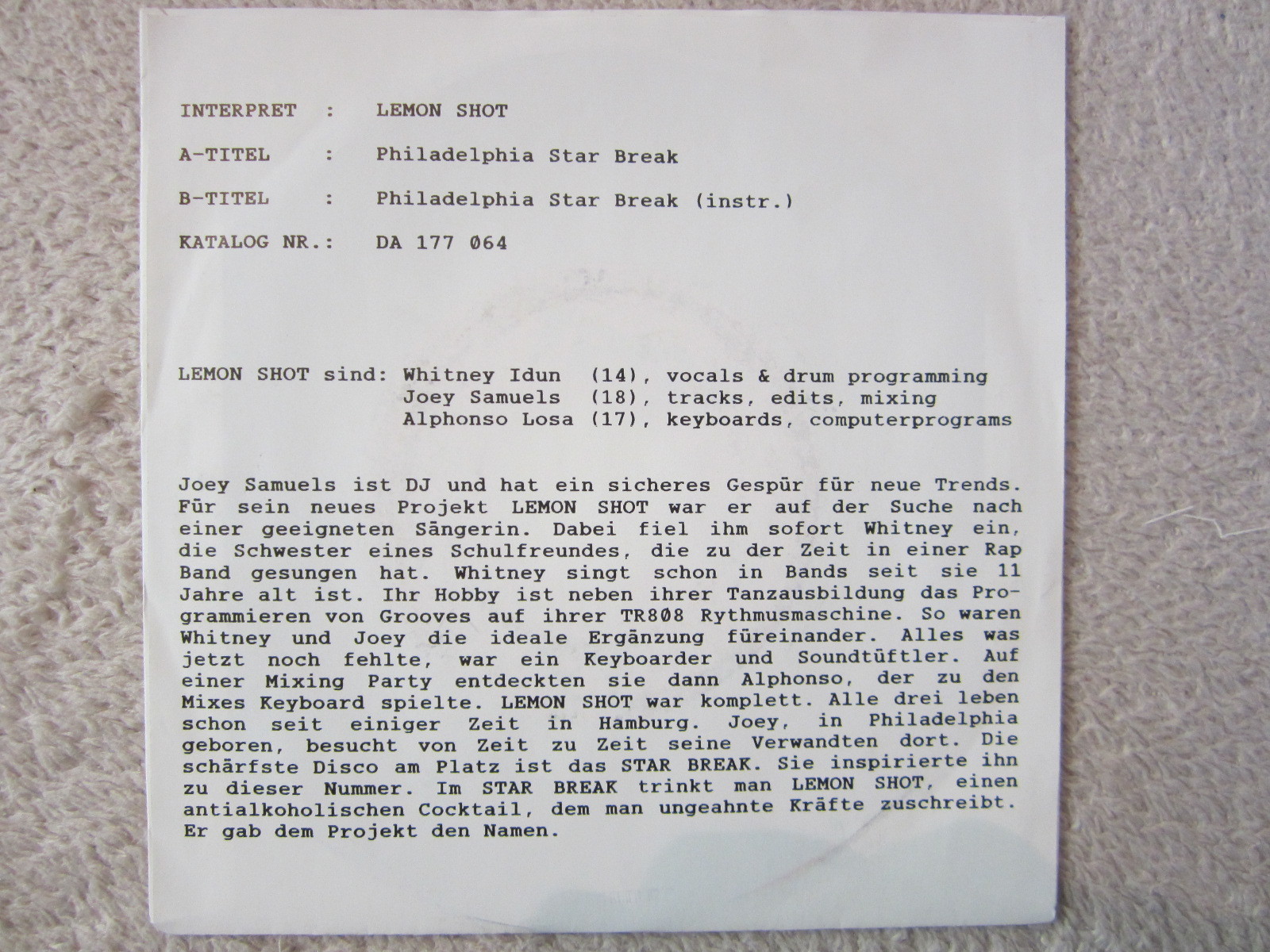 Single / LEMON SHOT / PROMO / HOUSE MUSIC / TOP RARITÄT /