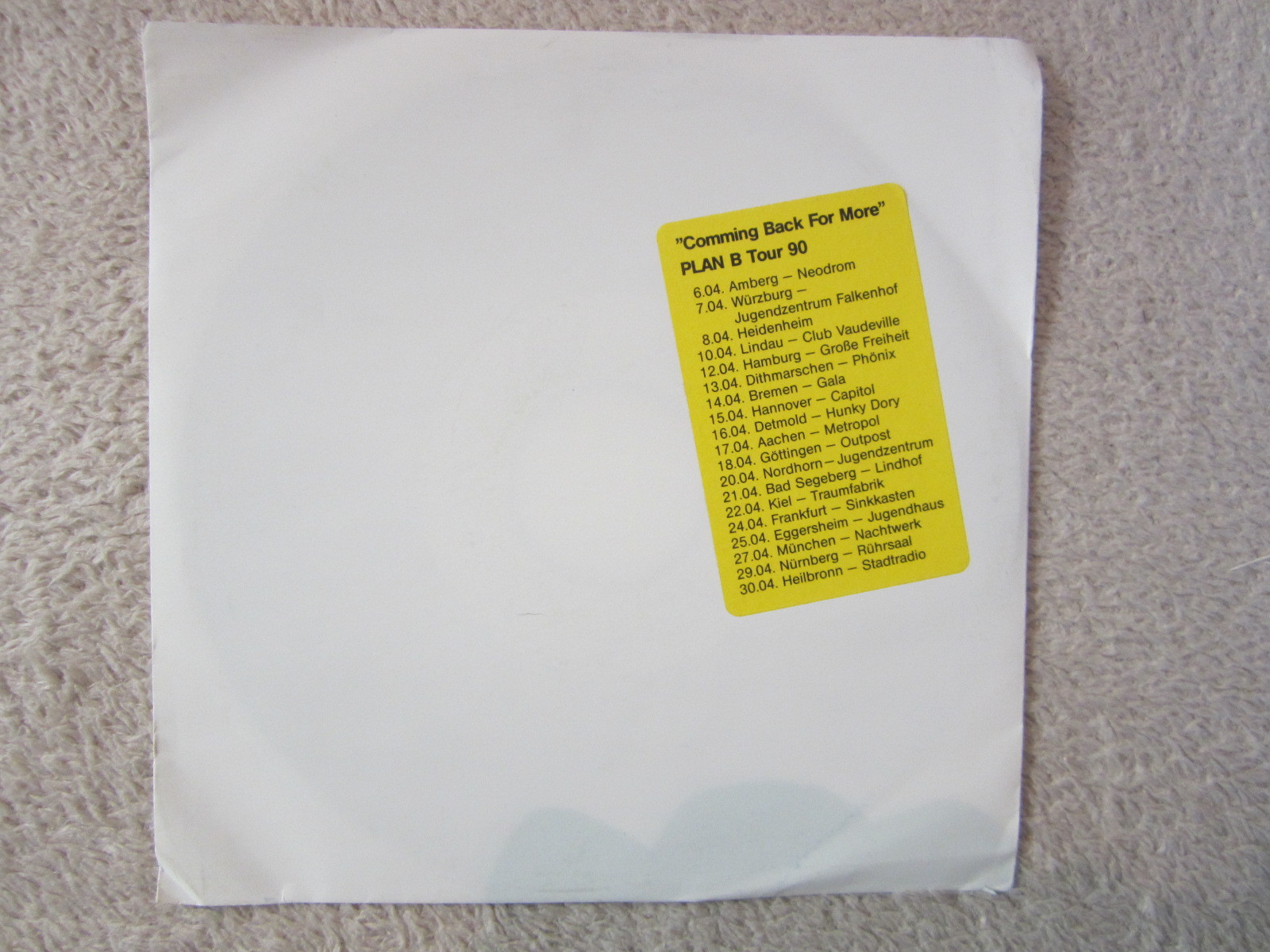 Single / PLAN B / TOUR 90 / MUSTERPLATTE / TOP RARITÄT / 1990 / NEW WAVE /