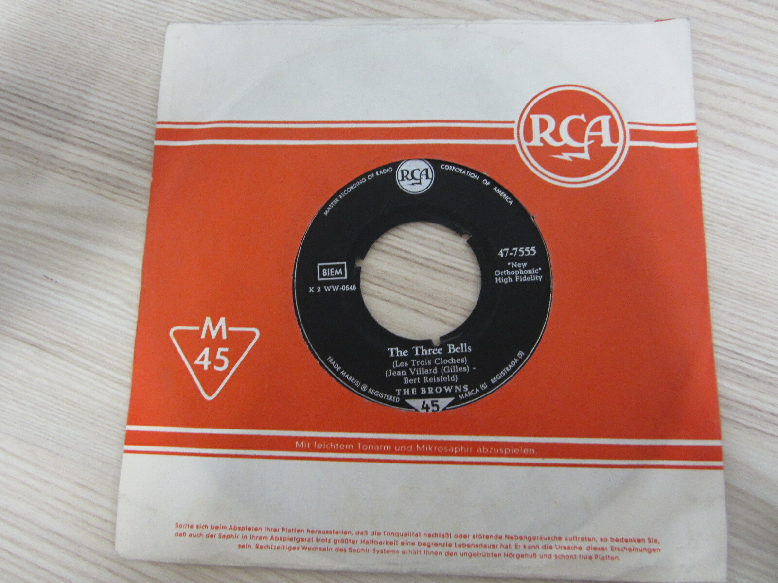 Single / The Browns ?– The Three Bells / DE PRESS / RAR /