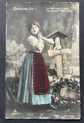 Verlassen bin i Frau Kleid Tracht Trauer Grab Kreuz Kranz Krieg 400404 TH