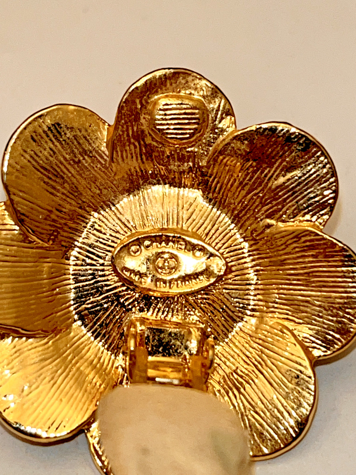 Vintage CHANEL CC Logo BlumenPerlen Ohrringe 40mm Durchm. R0013