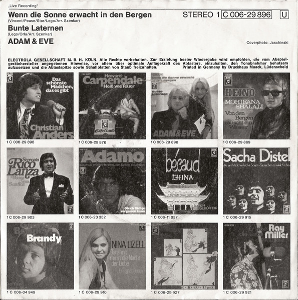 Vinyl / Adam & Eve (6) - Wenn Die Sonne Erwacht In Den Bergen / Bunte Laternen